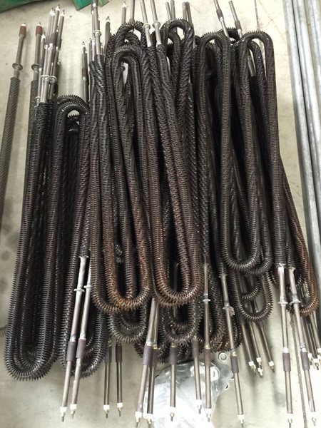 翅片式電加熱器可有效增加加熱器散熱面積降低表面溫度,減小加熱器體積,提高熱效率。